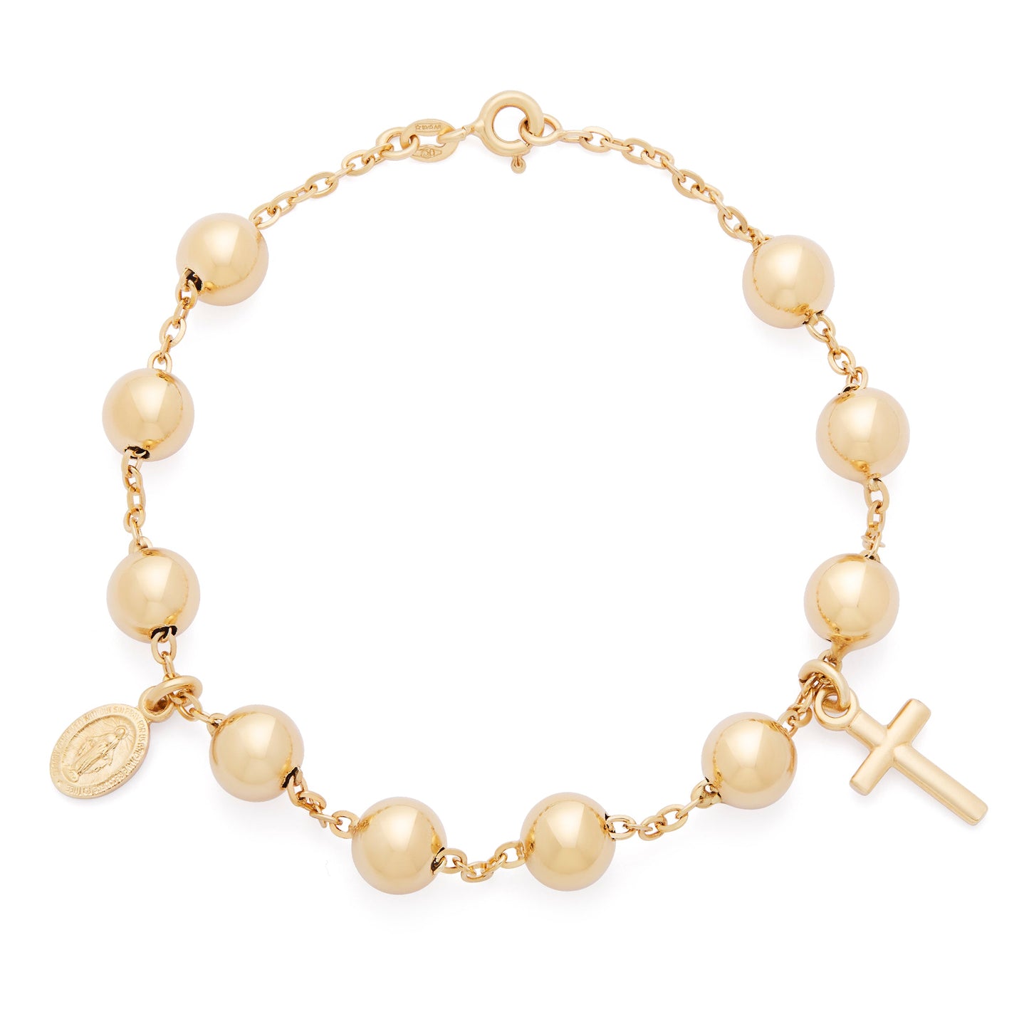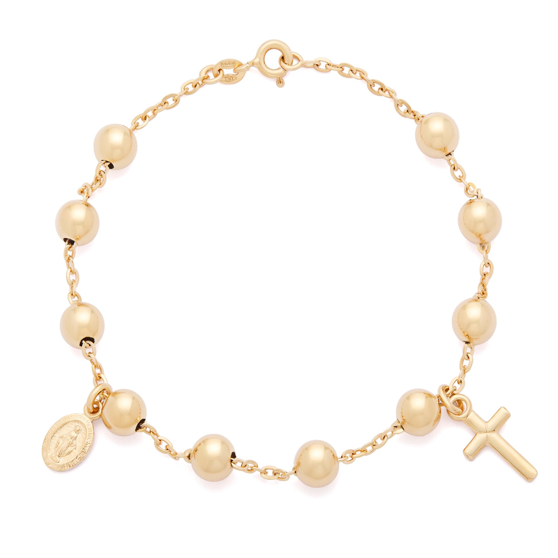 Pulsera Rosario De Oro Amarillo Con Medalla Milagrosa Y Cruz Colgantes