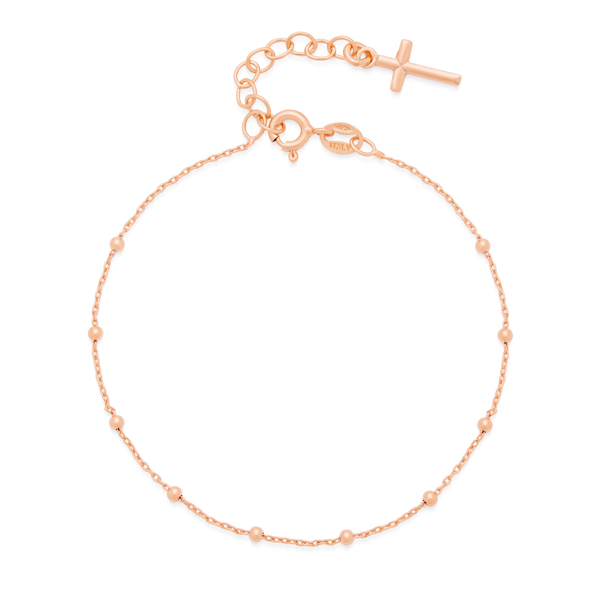 Pulsera Rosario De Plata Chapada en Oro Rosa Con Cruz Colgante Final