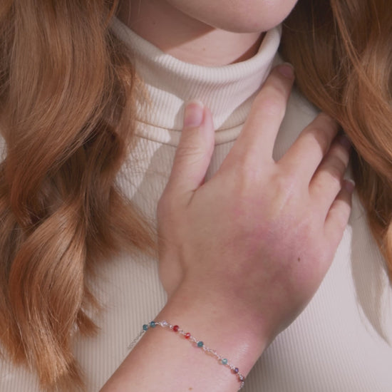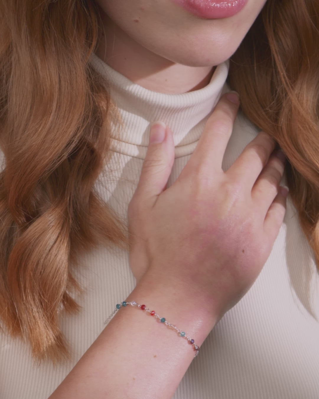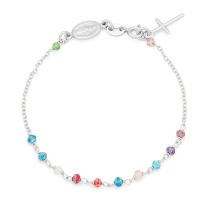Pulsera Rosario de Plata con Cuentas Multicolores y la Medalla Milagrosa
