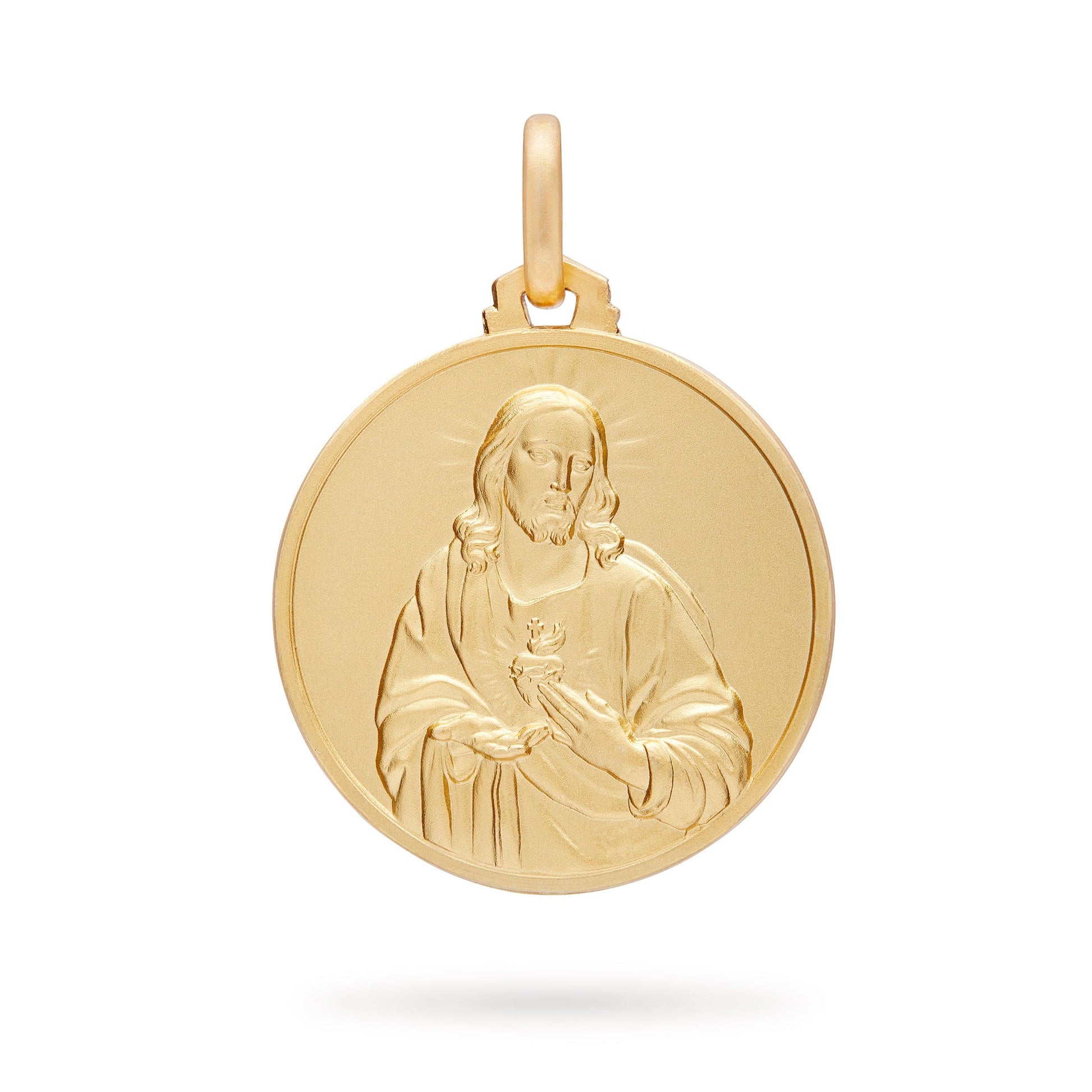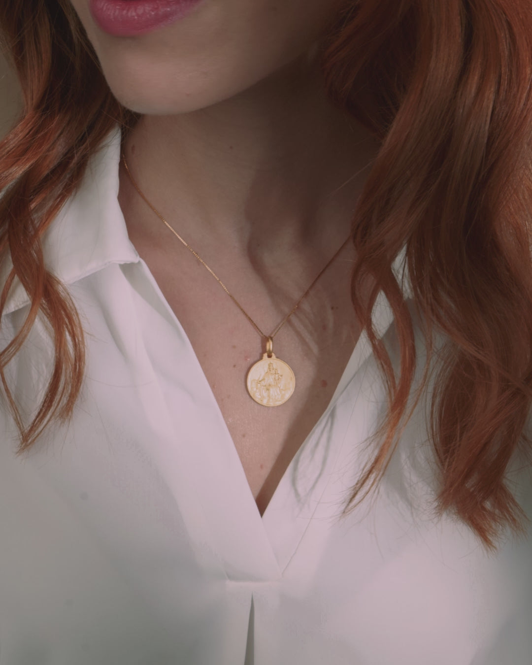 Medalla Escapulario en oro doble lado, Sagrado Corazon de Jesus y Virgen del Carmelo.