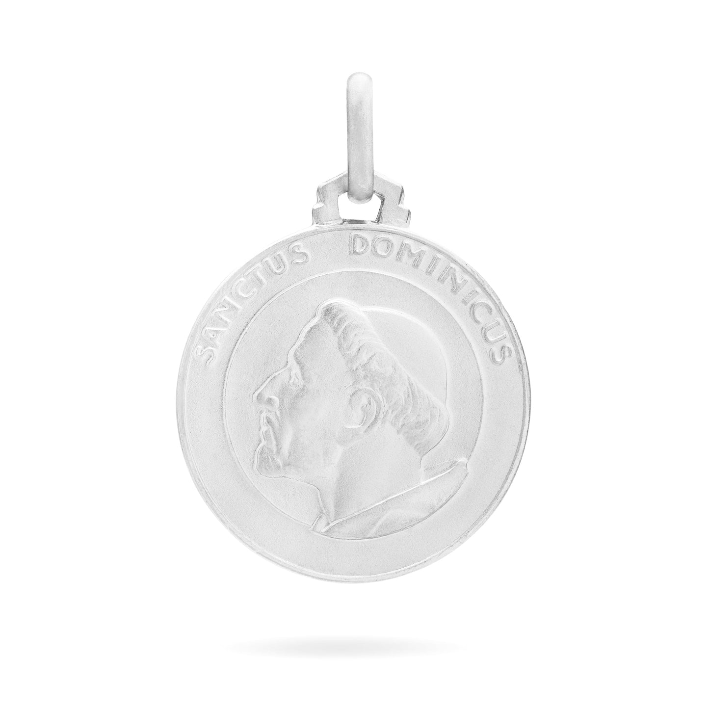 Medalla de plata de ley de San Domenico. Fundador de la orden de los dominicos, orden en la que se predicaba la rectitud, el espíritu de sacrificio y el estudio. "Frailes de María" los llamaba el pueblo, por su gran devoción a la Virgen.