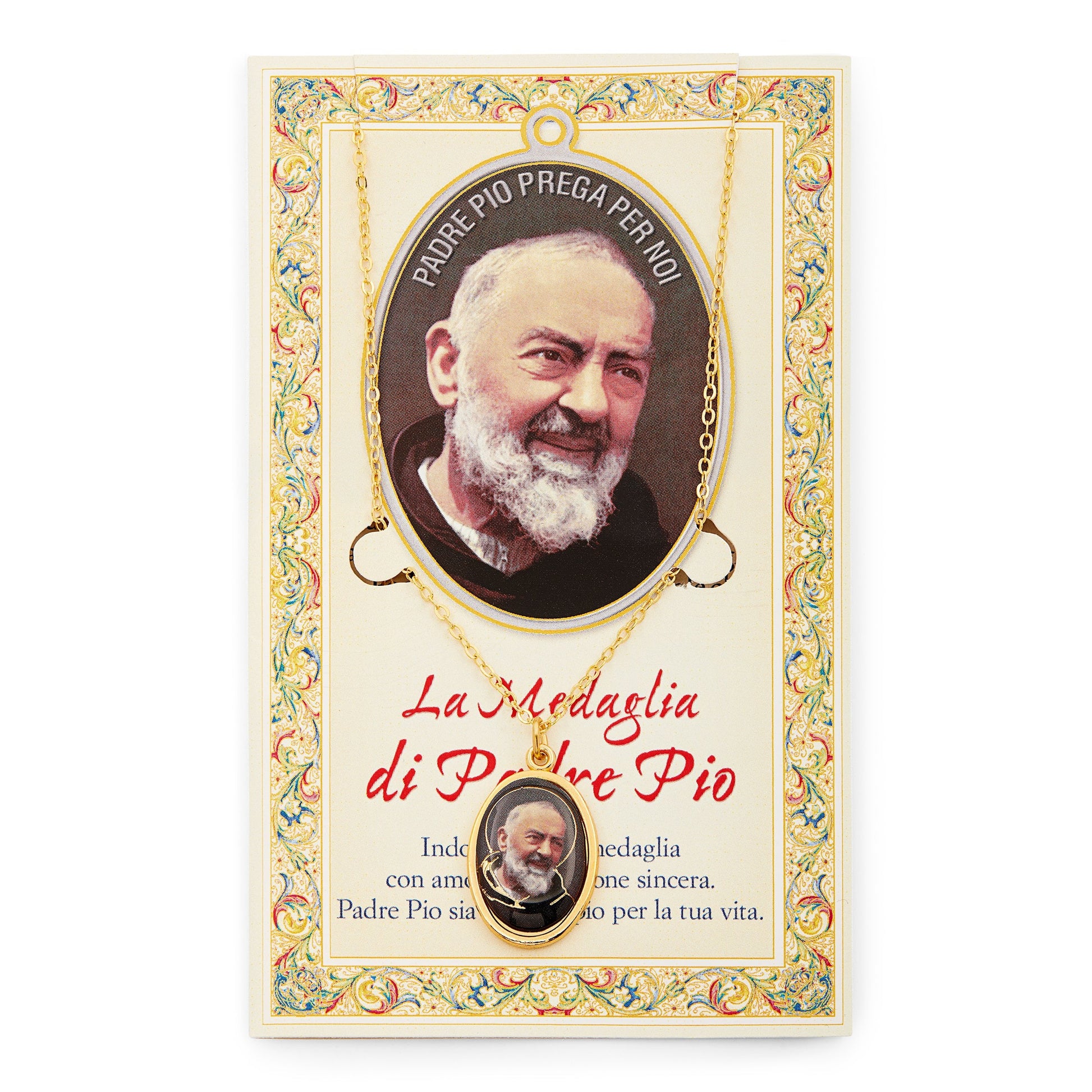 Estampita y Medalla con Cadena de padre Pío