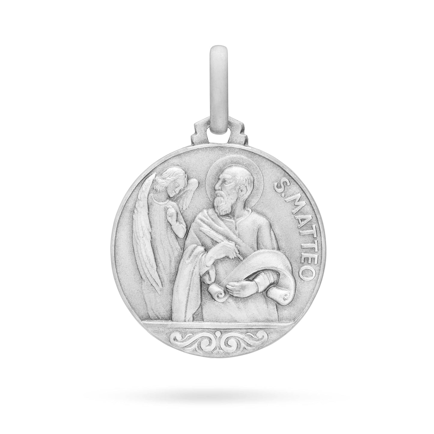 Medalla en plata esterlina 925 de San Mateo, uno de los doce apóstoles elegidos por Jesùs de Nazaret. Patrón de los banqueros, empleados de banco, agentes de aduanas, peritos mercantiles y contables.