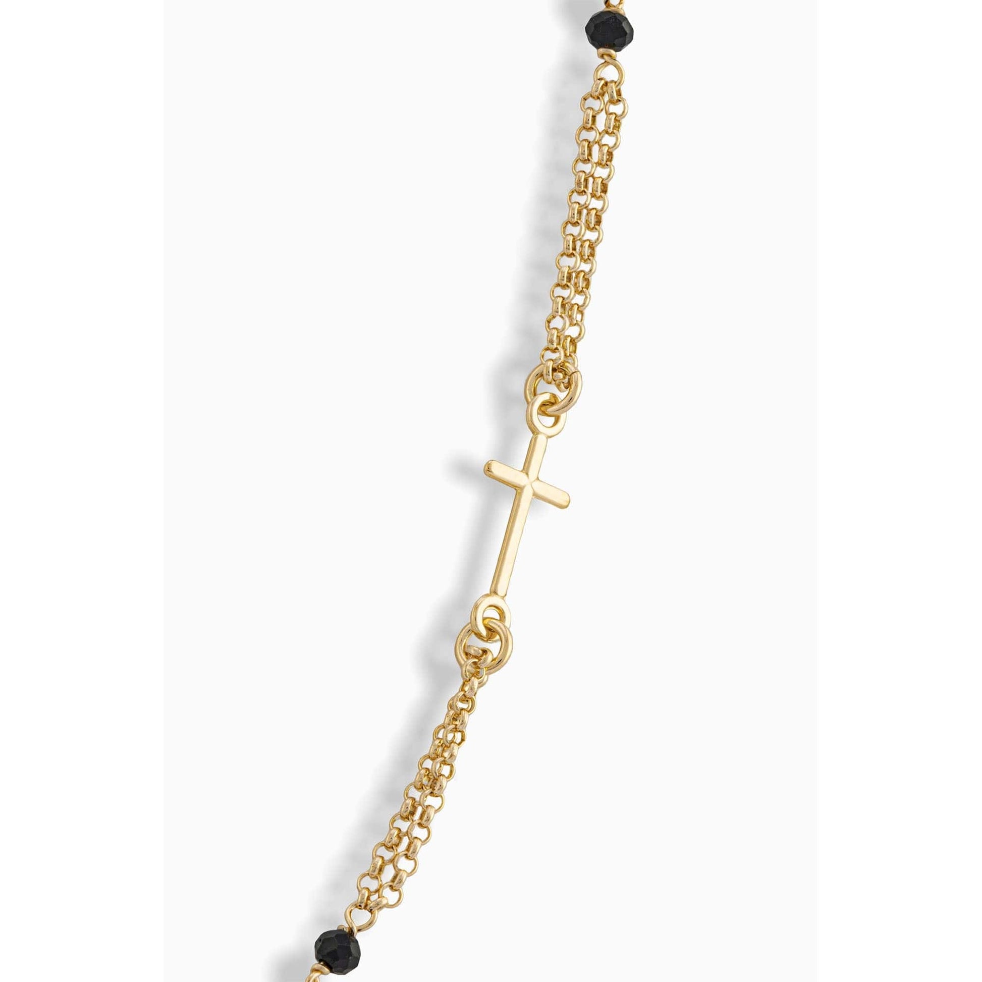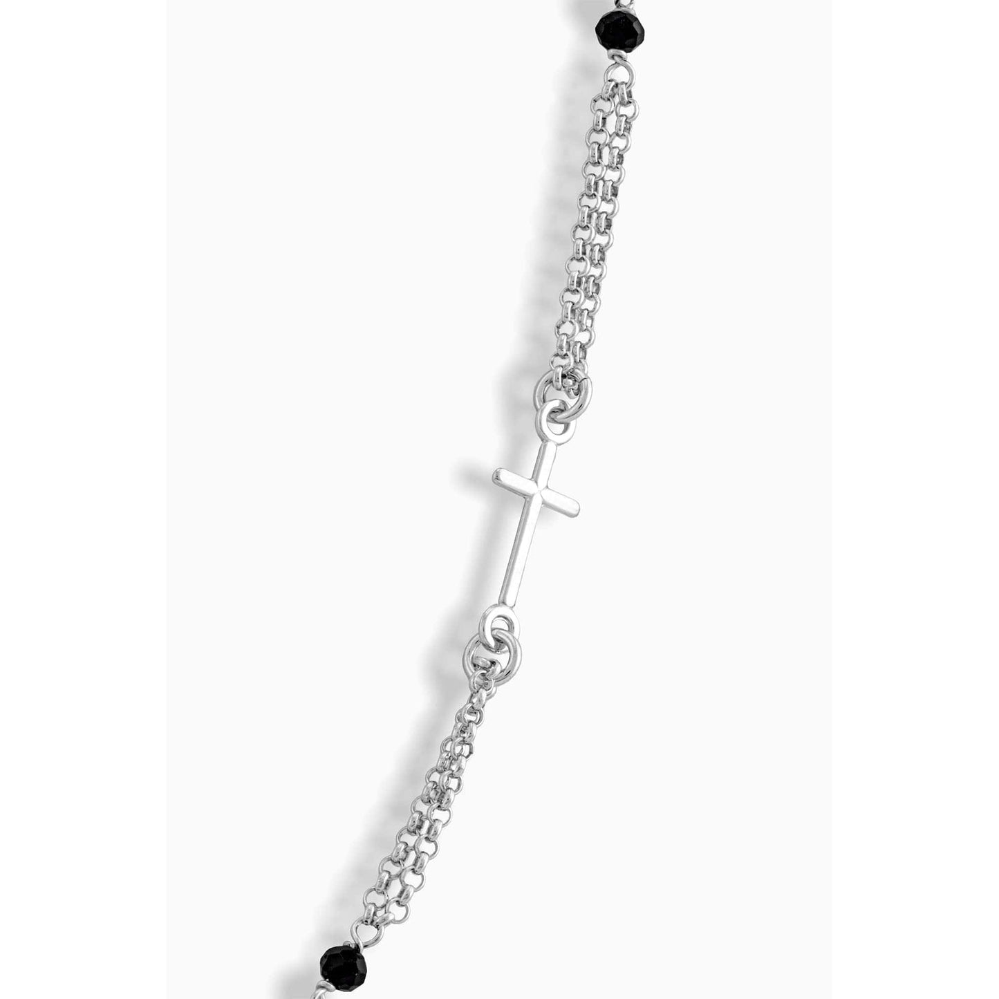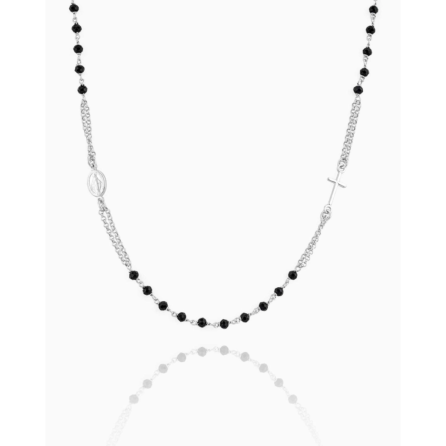 Collar Rosario De Doble Cadena De Plata Dorada Con Cuentas Negras Y El Sagrado Corazón de Jesús