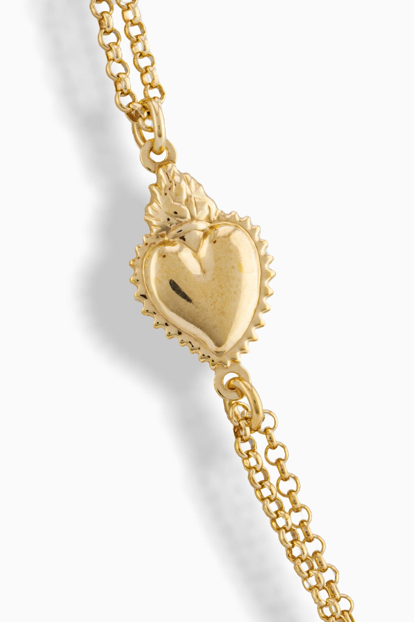 Pulsera De Oro Amarillo Con Medalla Milagrosa Y Cruz Colgante Final
