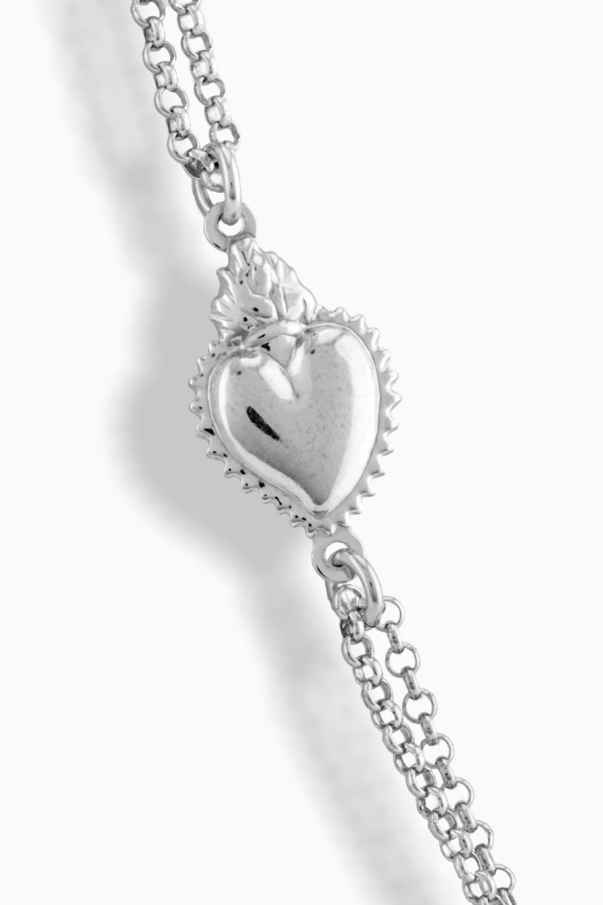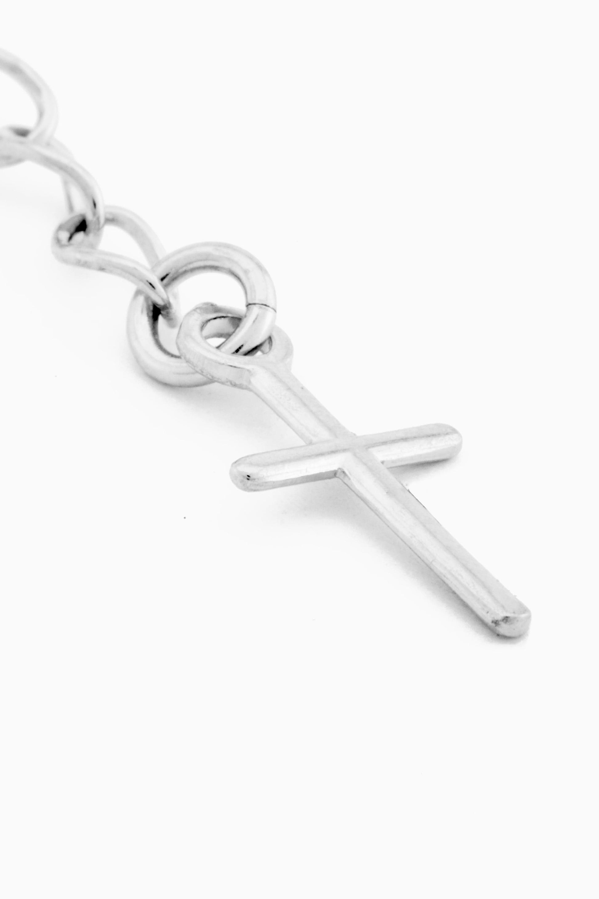 Pulsera De Oro Blanco Con Medalla Milagrosa Y Cruz Colgante Final