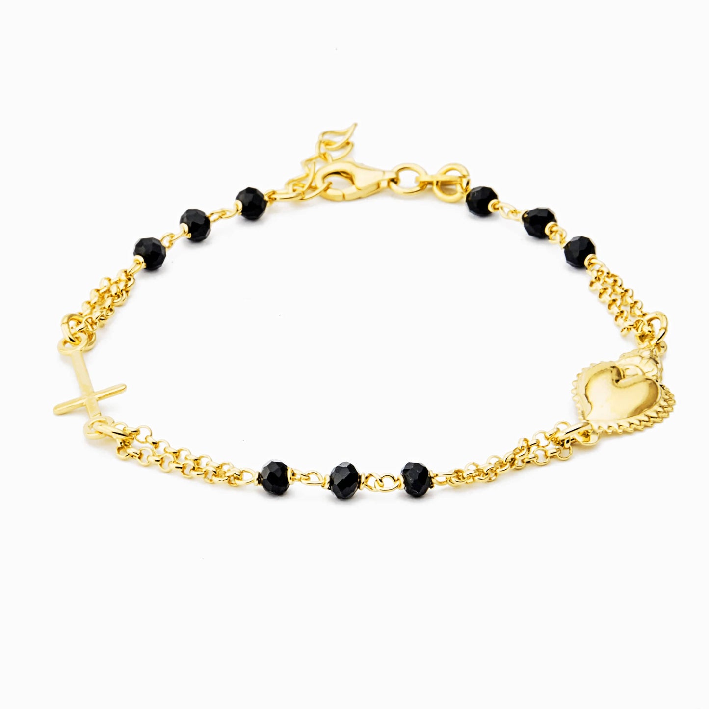 Pulsera Rosario De Oro Amarillo Con Medalla Milagrosa Y Cruz