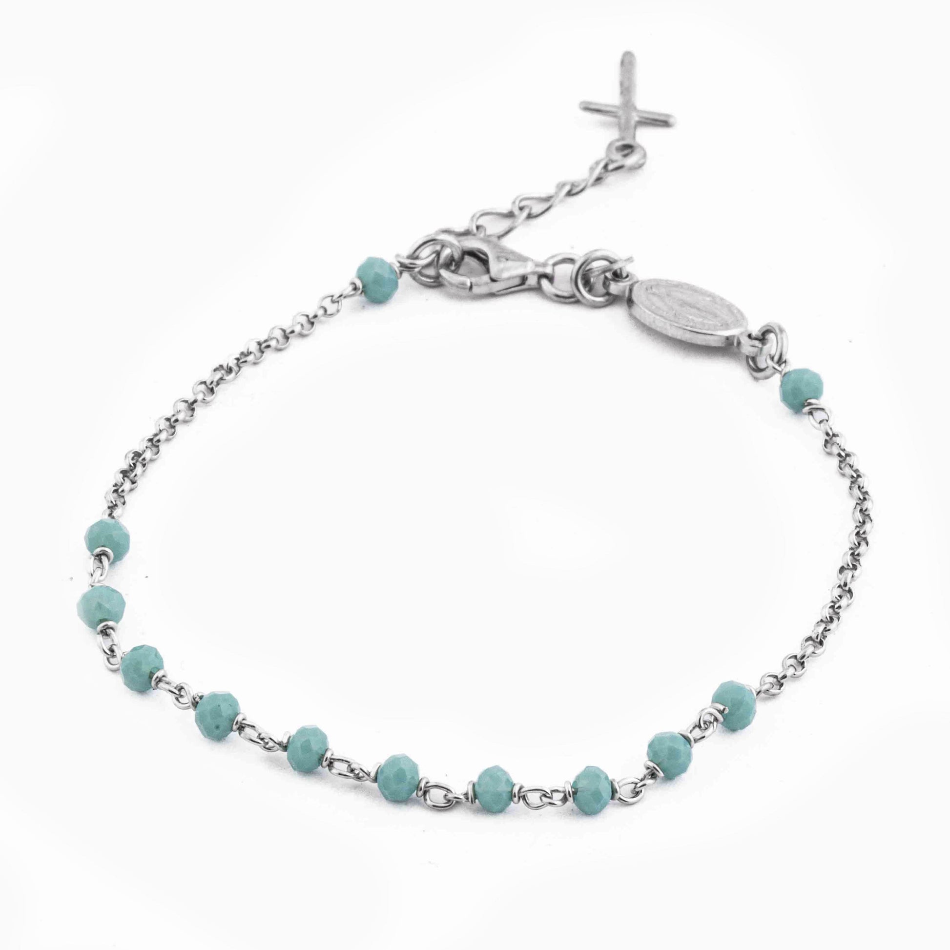 ROSARIO PULSERA DE PLATA CON MEDALLA MILAGROSA Y CUENTAS FACETADAS