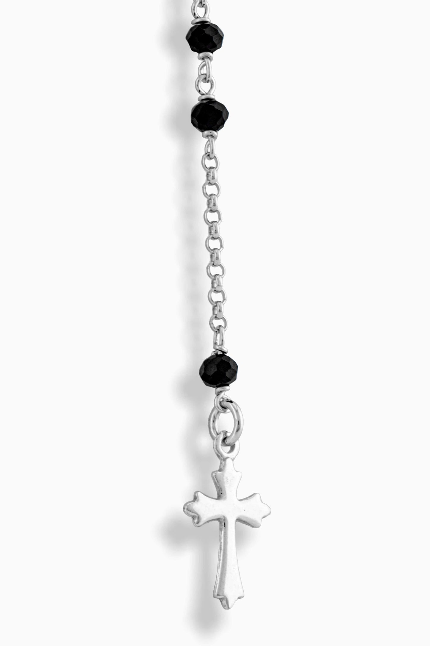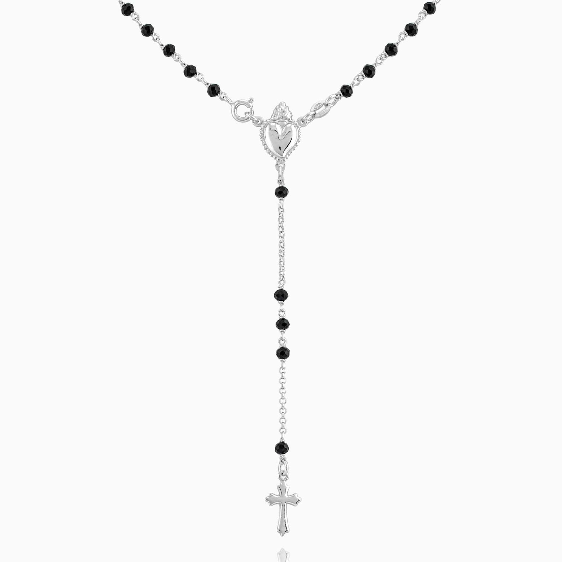 Rosario de Plata con Corazón Sagrado y Cuentas Negras de 2mm