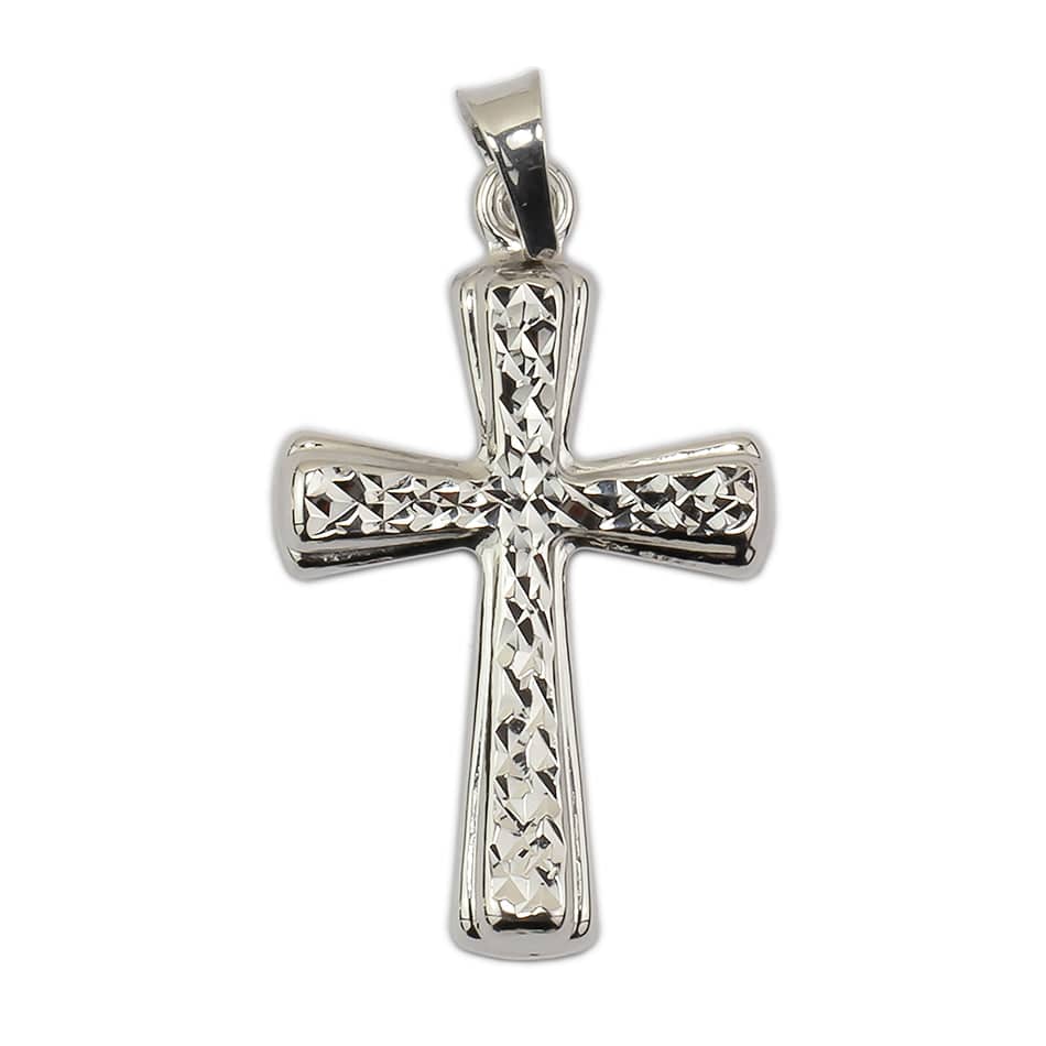Colgante Crucifijo sin Cuerpo diamantado de Oro Blanco 18 quilates