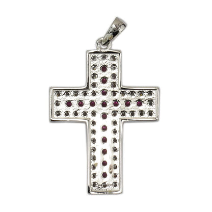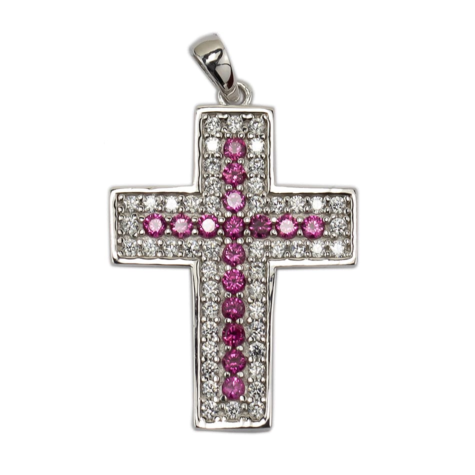 Cruz Plana de Oro Blanco 18 quilates con circón Rosa.