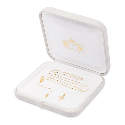 Juego de Confirmación en Oro Amarillo con Delicado Rosario y Diminuta Cruz
