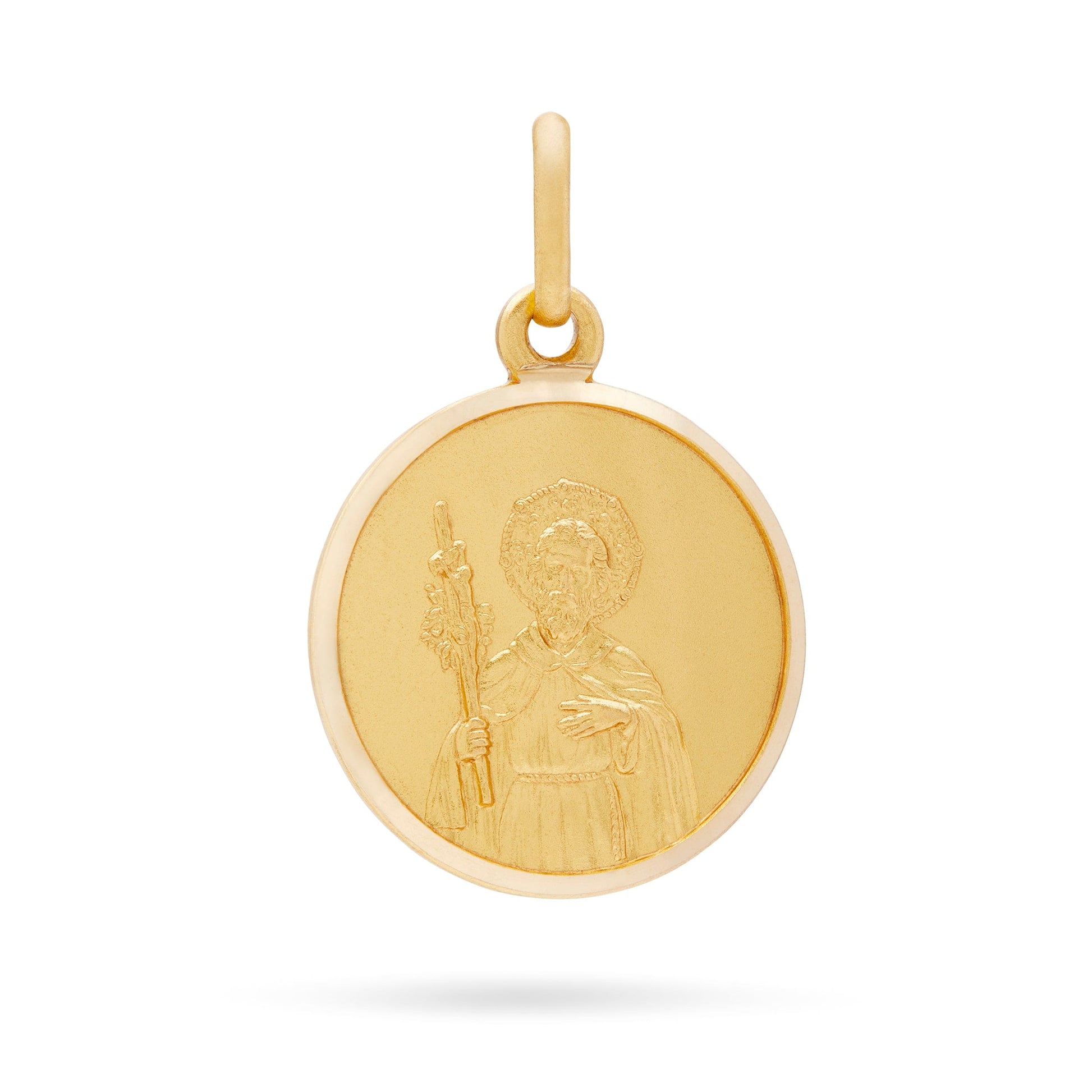 Medalla de oro amarillo de 18 kt que representa a San Ciro, protector de los enfermos y patrón de los médicos.