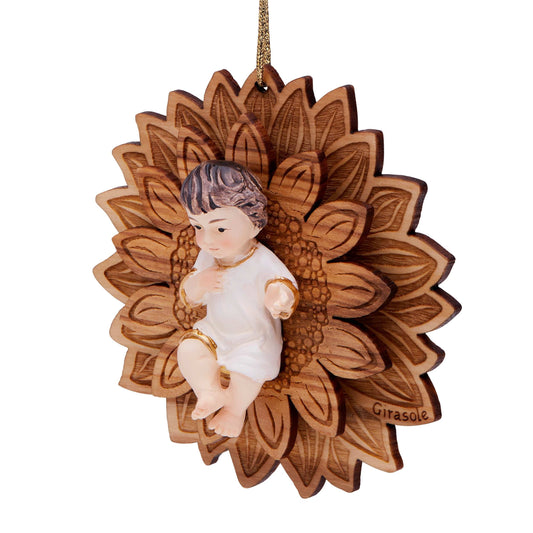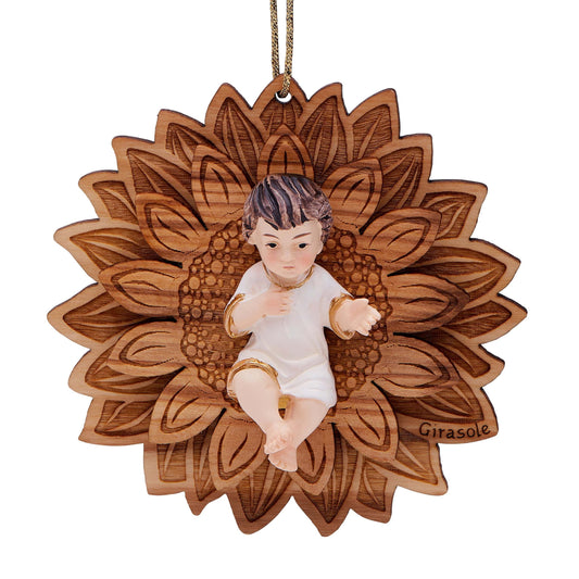 Palla Di Natale in Legno Con Presepe Intagliato e Fiocco Rosso