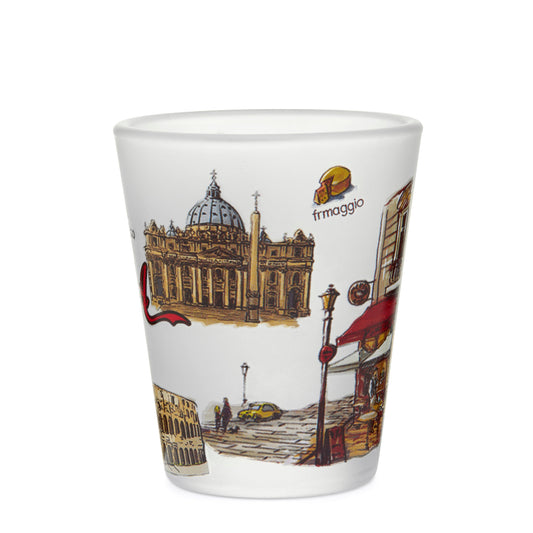 Bicchierino Souvenir Satinato con Monumenti di Roma e Cibo Tradizionale