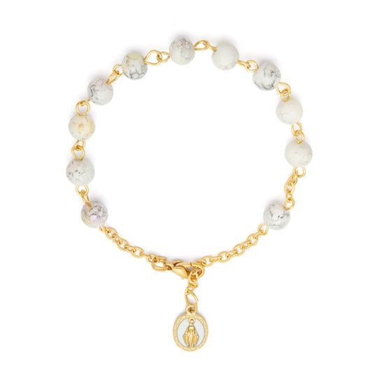 Bracciale Rosario Dorato con Grani Variegati Bianchi