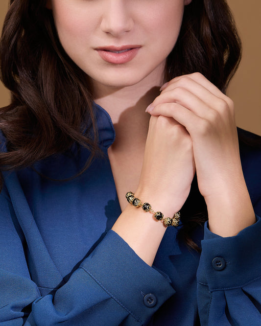 Bracciale Rosario Dorato con Grani in Cristallo Nero e Coppiglie in Filigrana