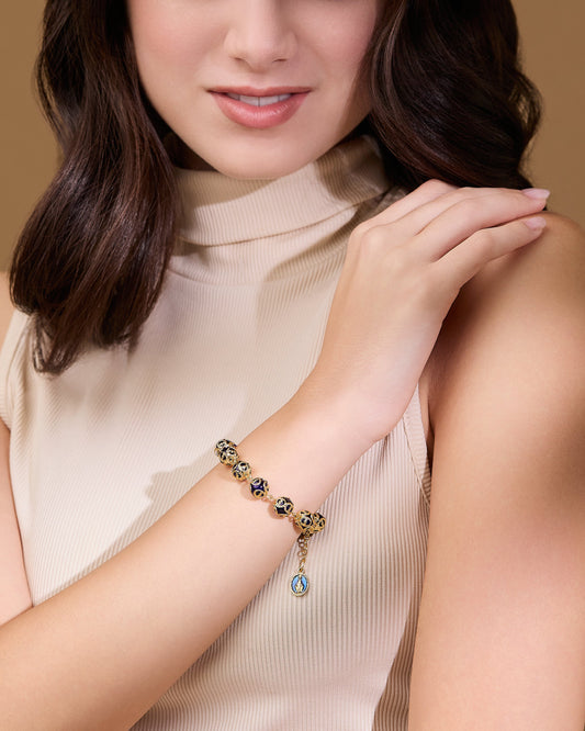 Bracciale Rosario Dorato con Grani Mongolfiera in Cristallo Nero