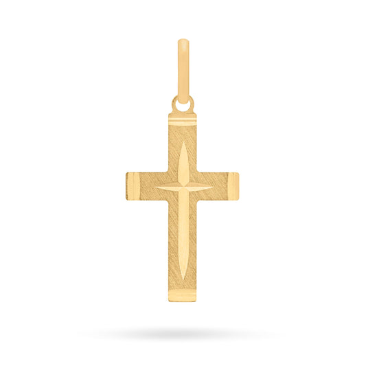 Croce Pendente in Argento Placcato Oro Spazzolato Con Estremi E Interno Lucidi