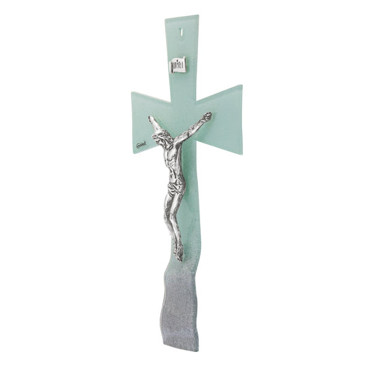 Crocifisso Ondulato Acquamarina in Vetro Di Murano