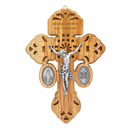 Croce Di San Benedetto in Legno Di Ulivo Colorata