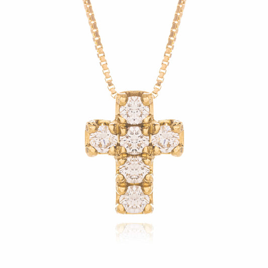 Collana con croce e diamanti in oro giallo