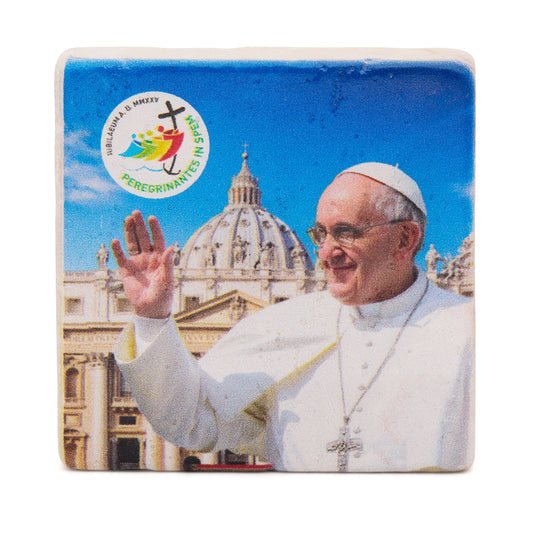 Magnete Quadrato in Polvere di Marmo con Logo del Giubileo 2025 e Papa Francesco