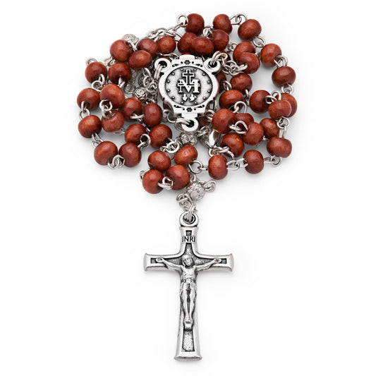 Portarosario in Legno D'ulivo Della Madonna della Medaglia Miracolosa Con Rosario in Legno
