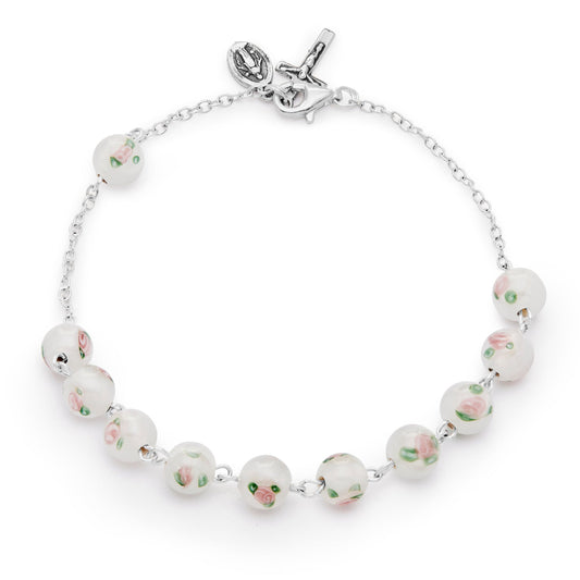 Rosario Scapolare con Grani di Perle Sintetiche e Dettagli Rossi