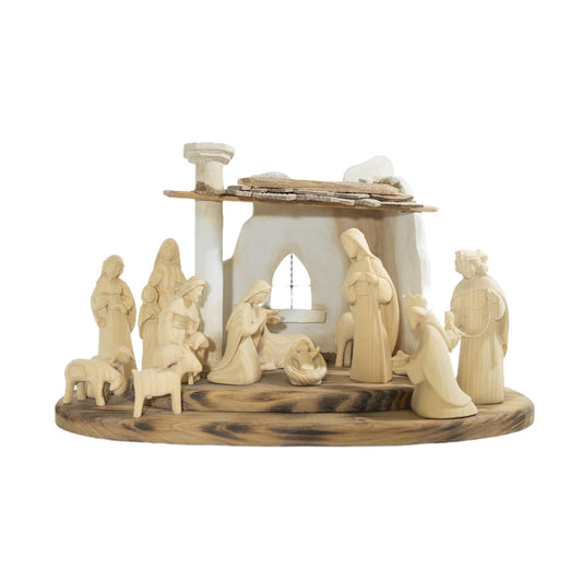 Presepe in Polvere di Marmo con Capanna a Forma di Ali