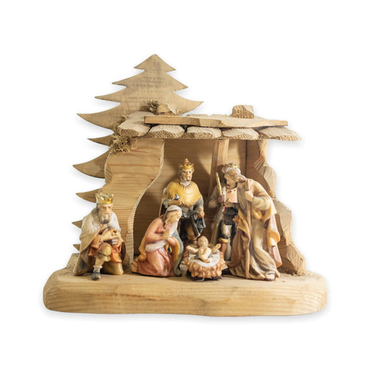 Presepe in Legno Tradizionale con i Re Magi e Pastori