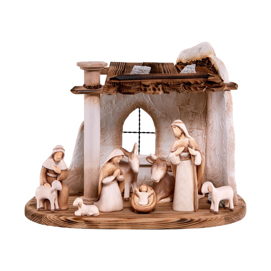 Presepe in Legno Stile Moderno con Capanna Scenica, i Regi Magi e Pastori