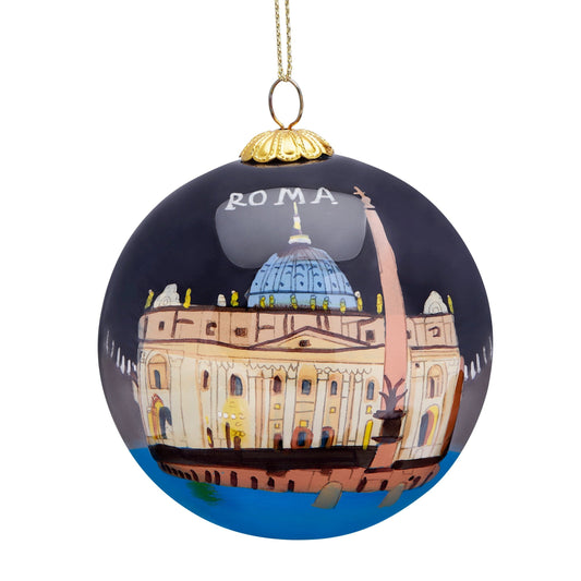 Palla Di Natale in Vetro Rappresentante Basilica Di San Pietro Di Notte