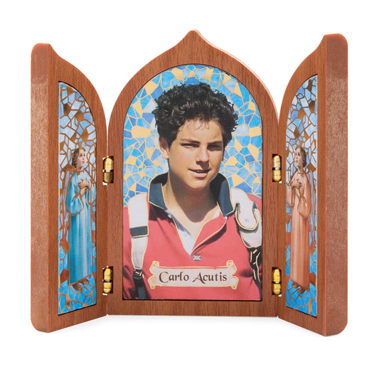 Trittico in Legno Con San Carlo Acutis Ed Angeli