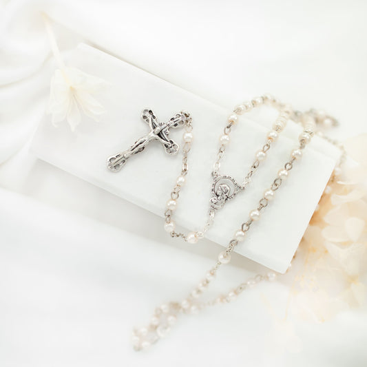 Rosario Tradizionale Argento Grani in Perla