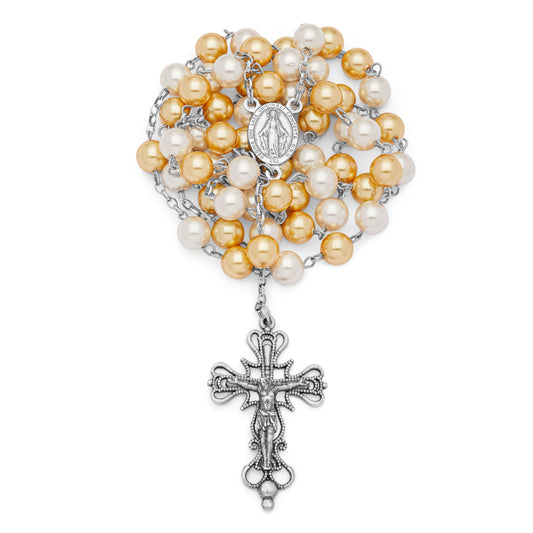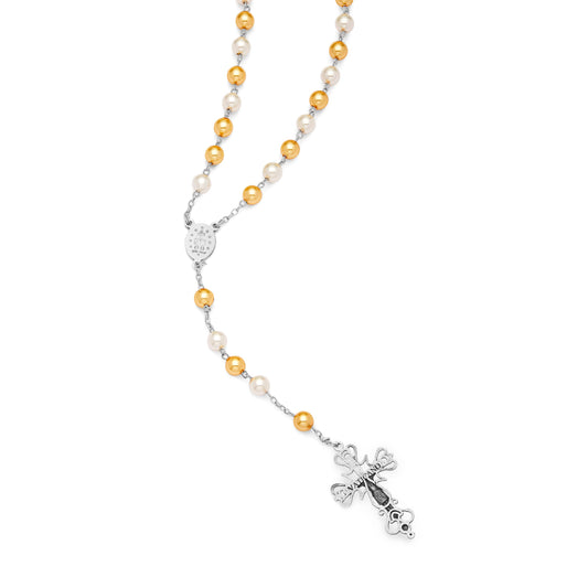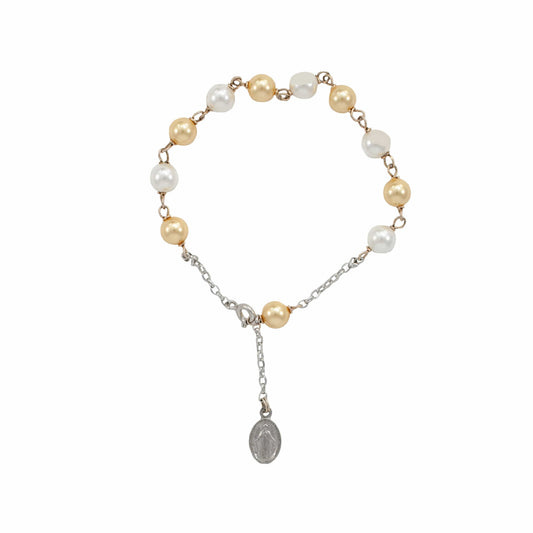 Bracciale Rosario Argento Perle Swarovski Bianche ed Oro