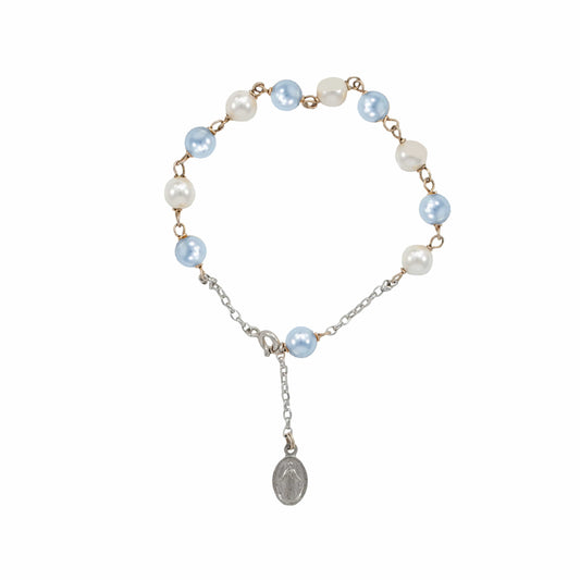 Bracciale Rosario Argento Perla di Cristallo Swarovski Bianche e Celesti
