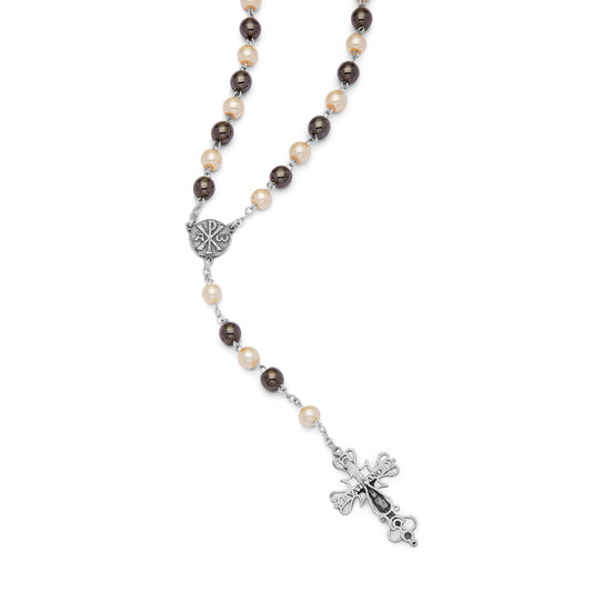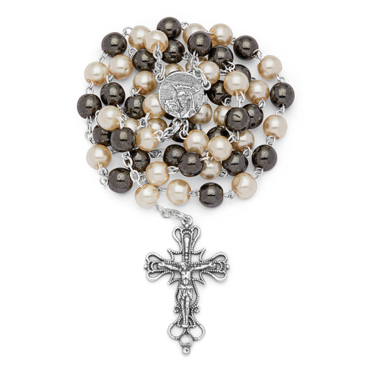 Rosario di Papa Francesco con Grani in Vetro Nero e Perla Sintetica