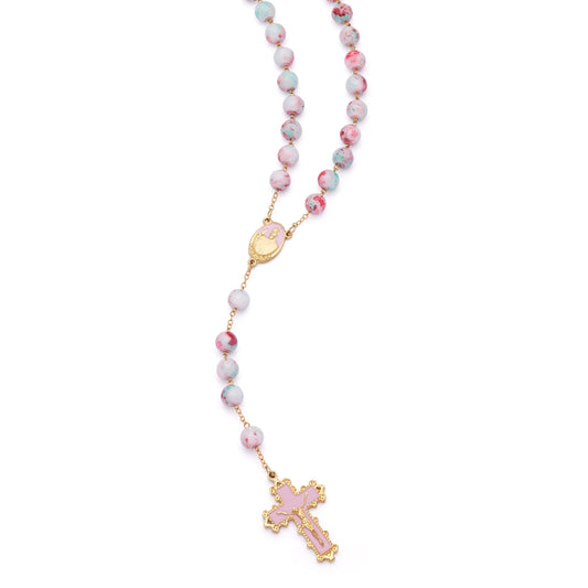 Rosario di Papa Francesco con Grani Variegati Bianco e Rosa