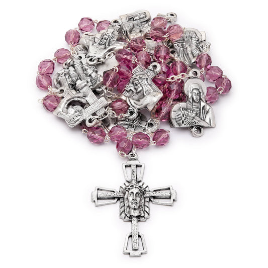 Rosario Stazioni della Via Crucis in grani di cristallo sfaccettato color ametista