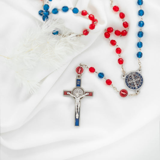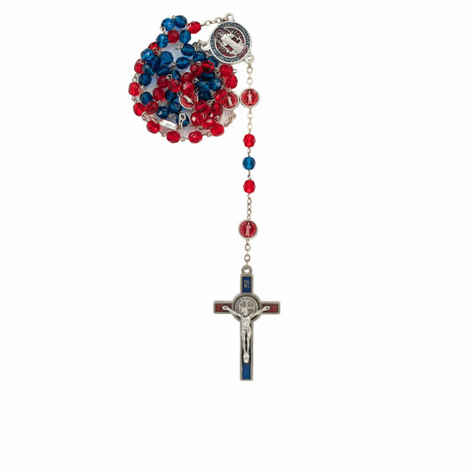 Rosario San Benedetto Grani in Cristallo Rossi e Blu