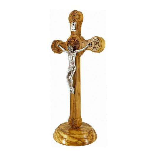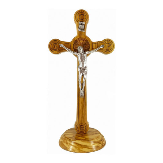 Crocifisso Da Appoggio Di San Benedetto in Legno Di Ulivo