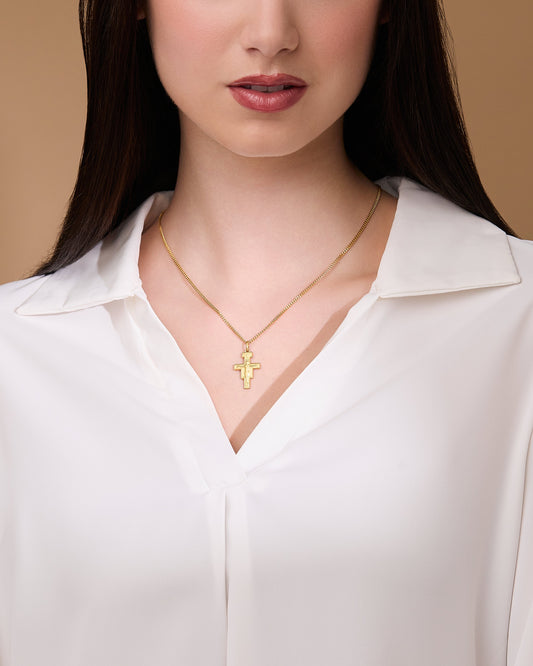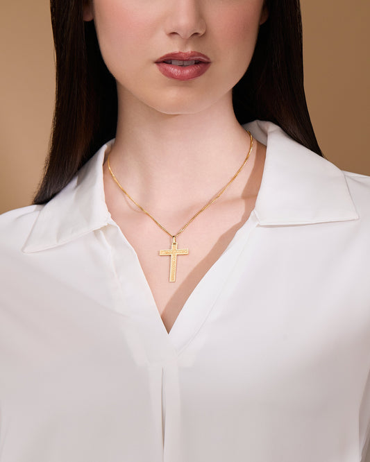 Croce Pendente in Argento Placcato Oro Spazzolato Con Estremi E Interno Lucidi
