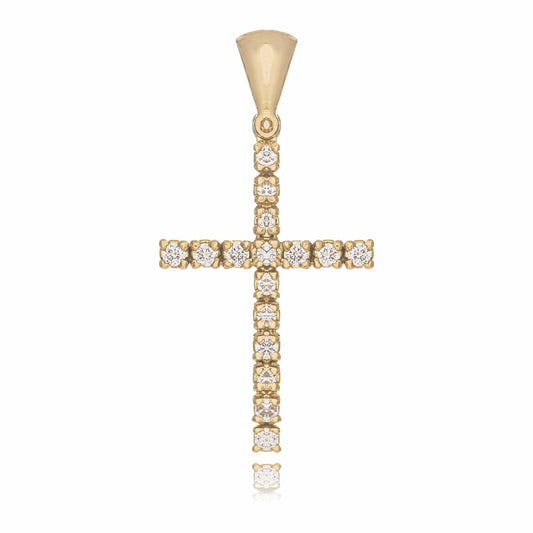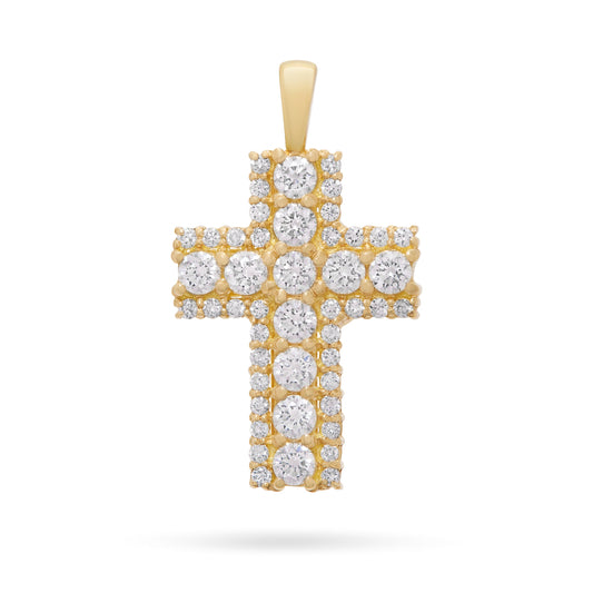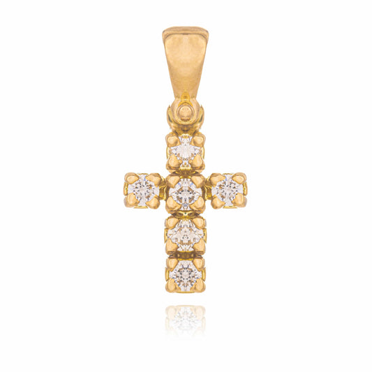 Croce Pendente in Oro Giallo con Diamanti Grandi e Piccoli