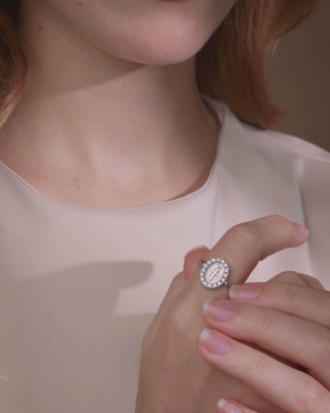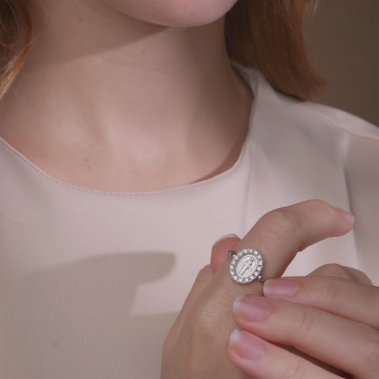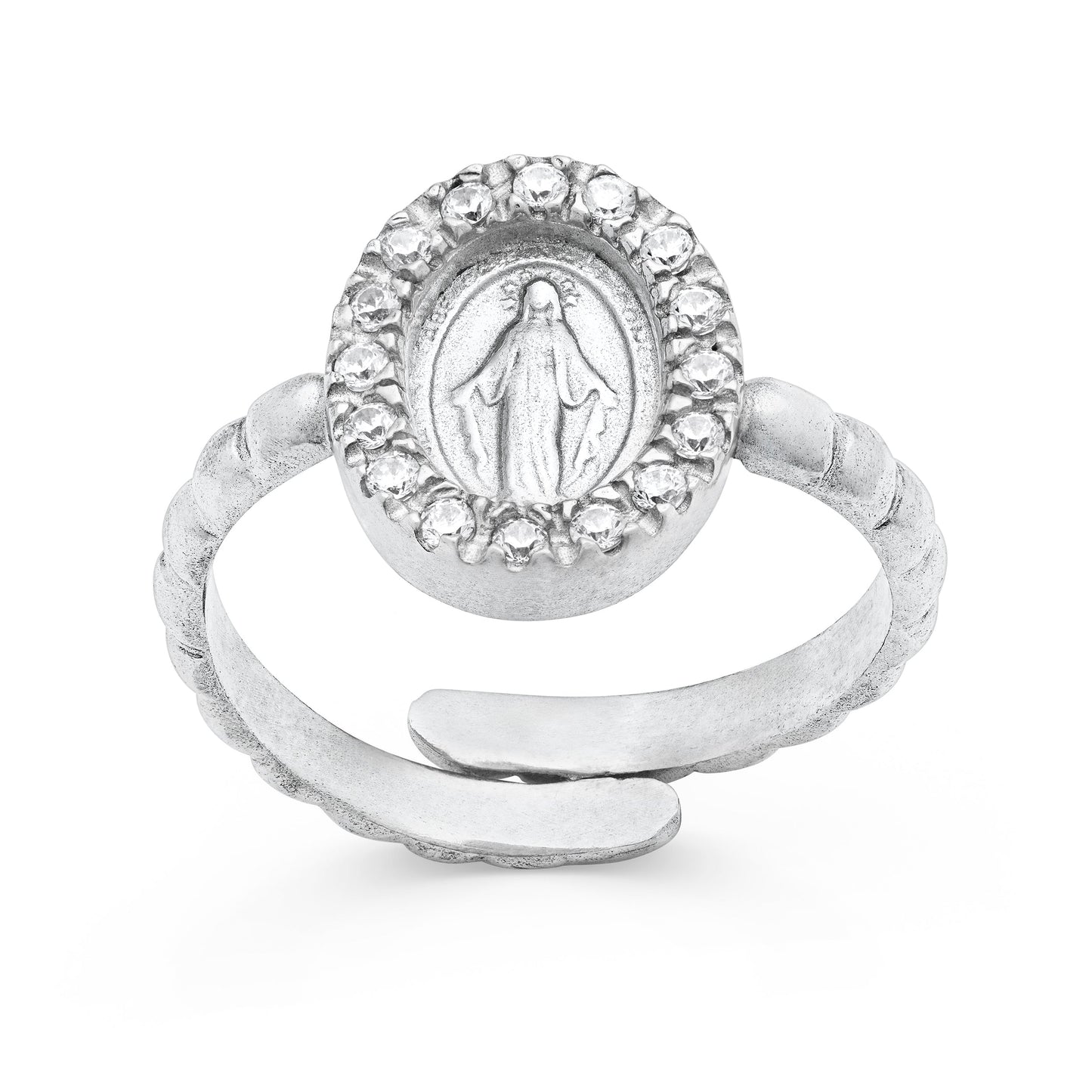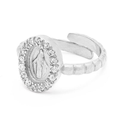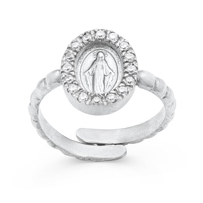 Anello Lavorato Regolabile in Argento 925 Con Medaglia Miracolosa