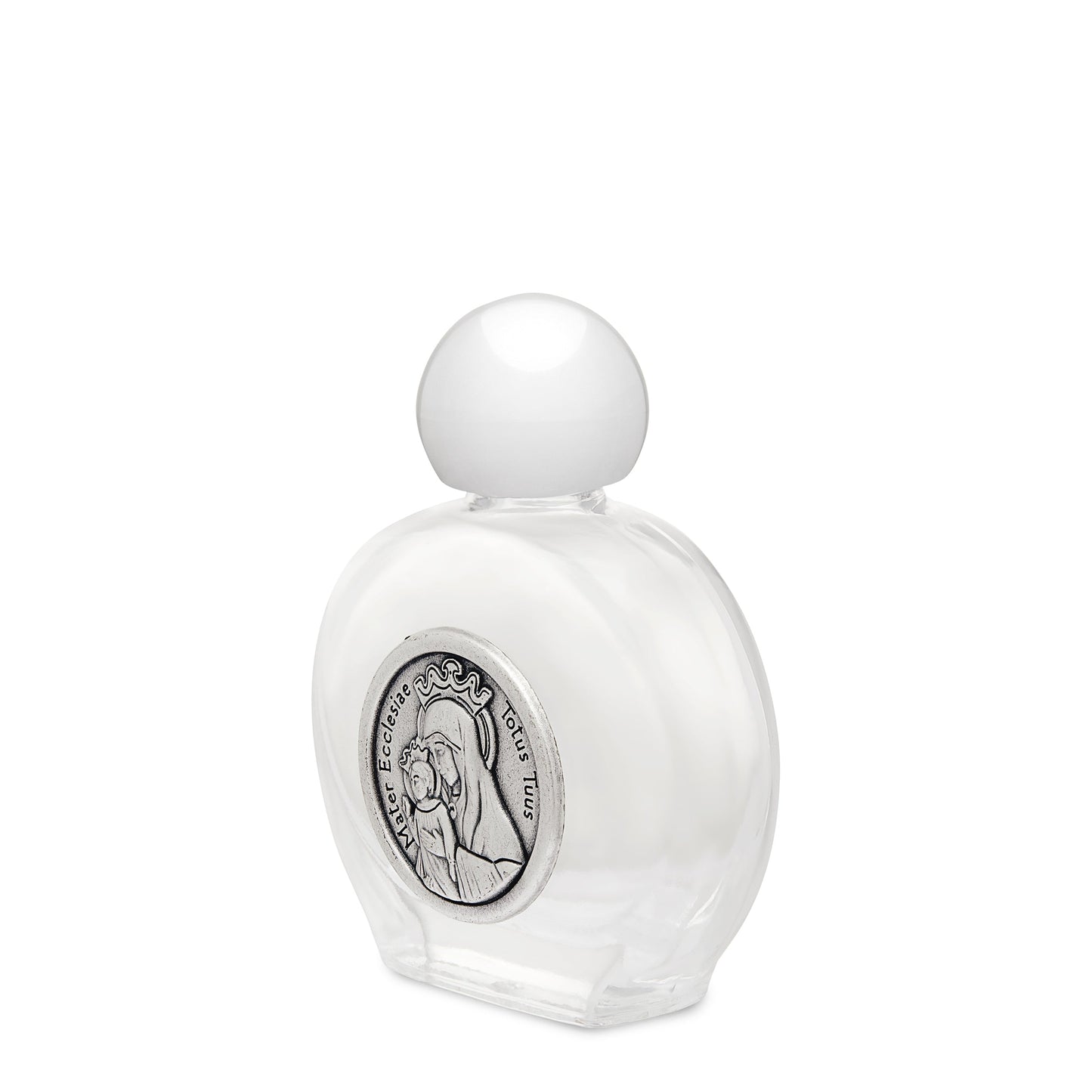 Bottiglietta da 10 ml per Acqua Santa raffigurante la Mater Ecclesiae. Dimensioni della bottiglia: altezza 5 cm. - Larghezza: 4 cm.