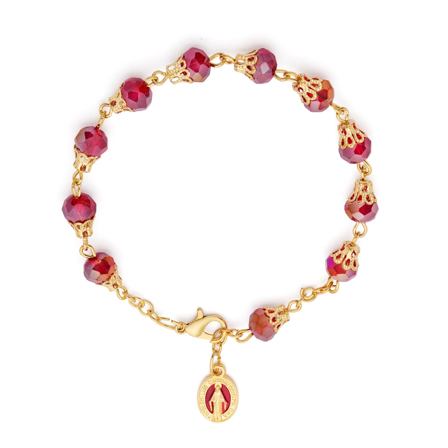 Bracciale Rosario Dorato con Grani Mongolfiera in Cristallo Rosso