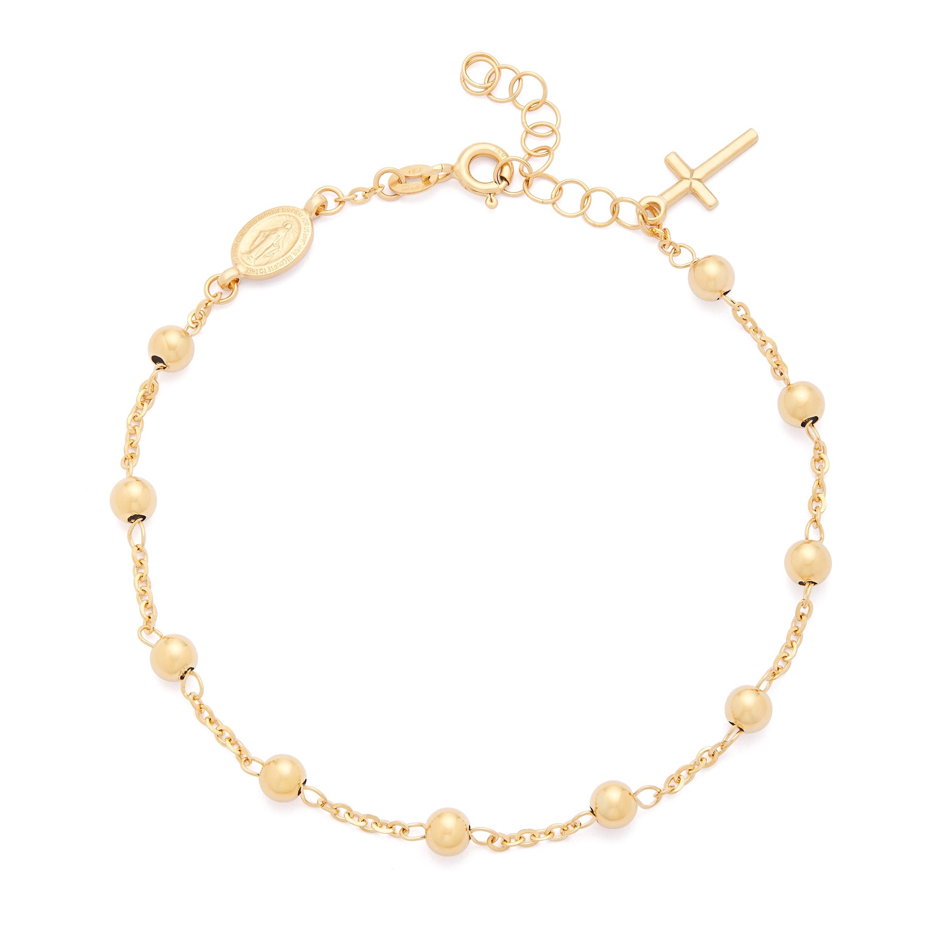 Bracciale Rosario in Oro Giallo con Medaglia Miracolosa e Croce Pendente