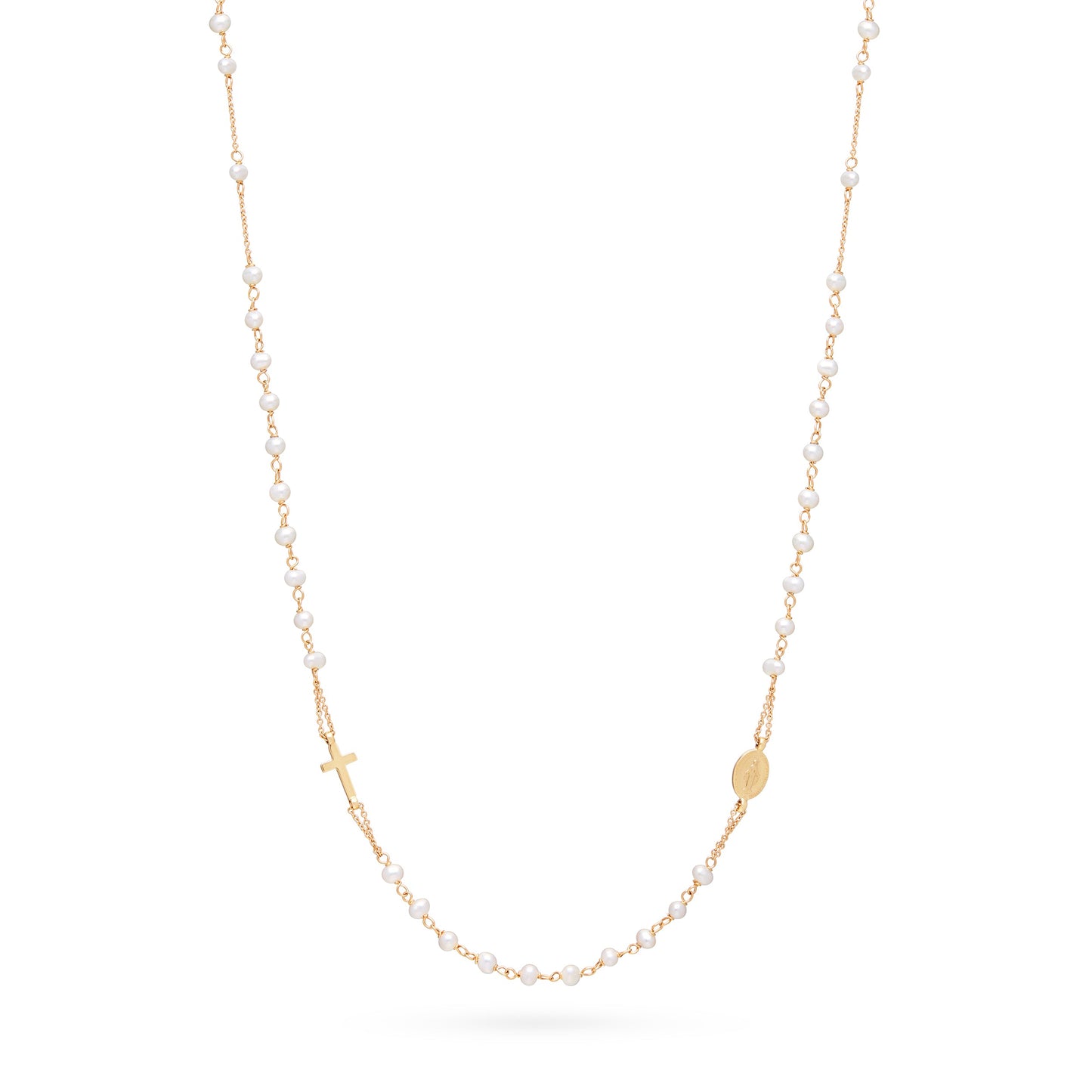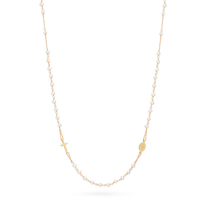 Collana Rosario in Oro Giallo con Grani in Perla Bianca