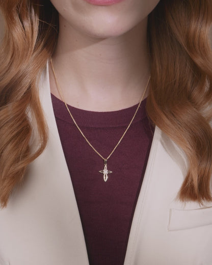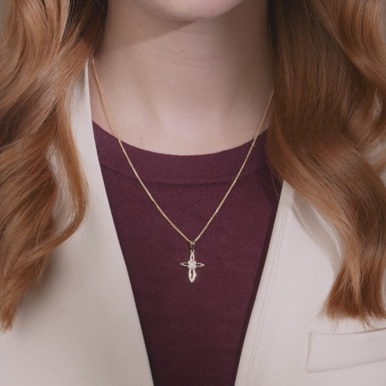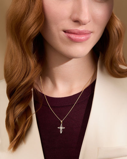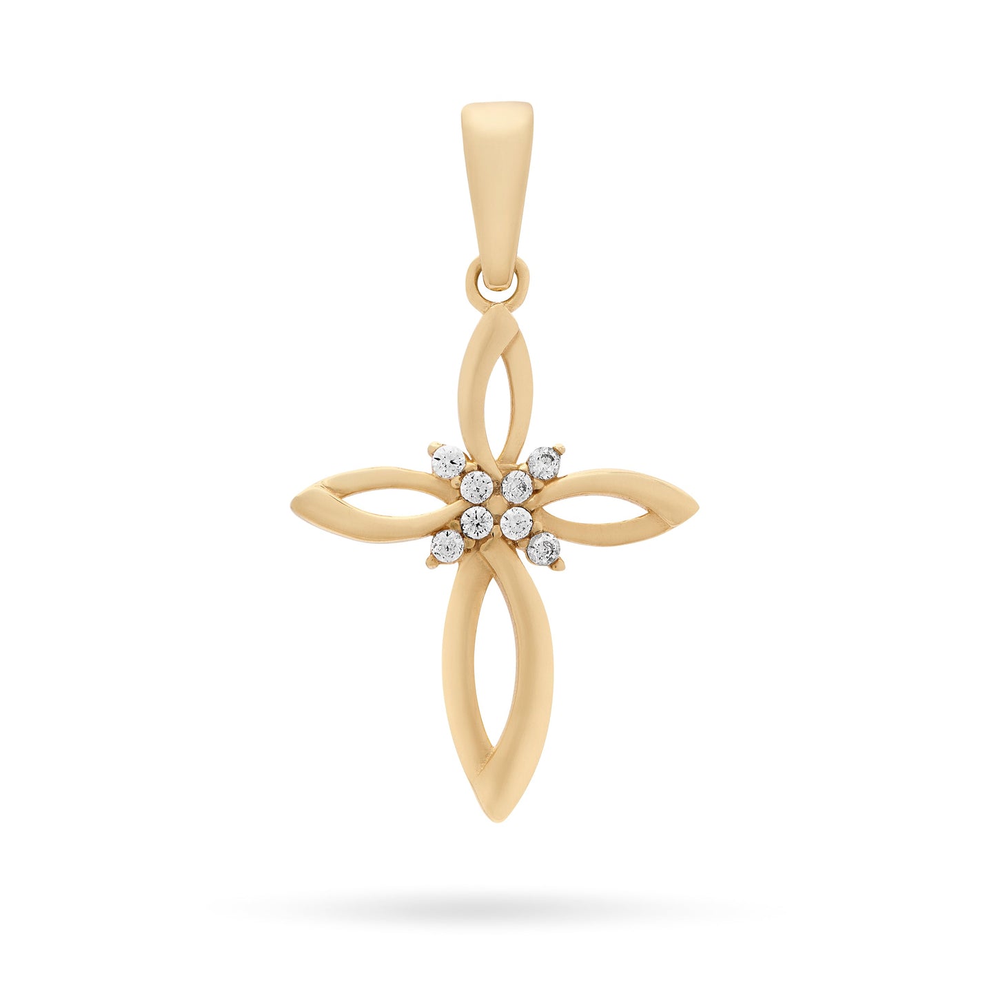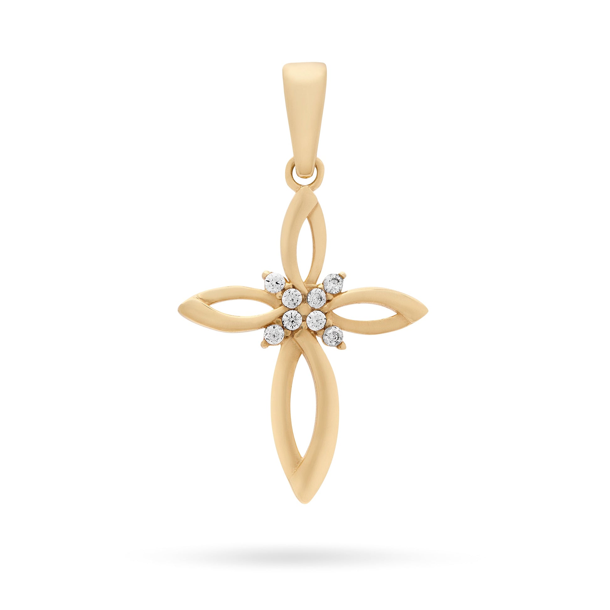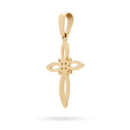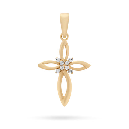 Croce a Fiore Vuota Pendente in Oro Giallo Con Zirconi Nel Centro